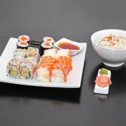Indulge in the Solo 3 plateau, featuring a delicious combination of makis, japp rolls, Californias, and spring rolls, or try the Salade chinoise au saumon cuit for a refreshing and light option.
